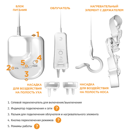 !!! Для лечения отита используется насадка "УХО", которую нужноприобретать отдельно