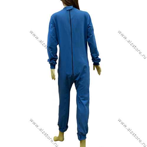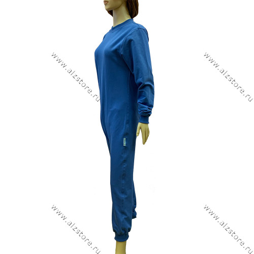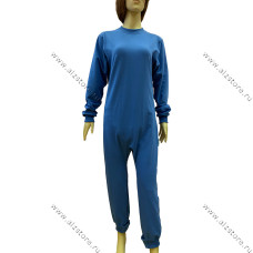 Адаптивная одежда для больных деменцией или болезнью Альцгеймера в варианте пижамы-комбинезона из трикотажного хлопка очень приятна к телу, свободно пропускает воздух, поэтому для чувствительной кожи пожилых пациентов это идеальная одежда.