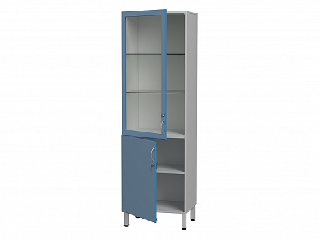 Шкаф медицинский металлический комбинированный с распашными дверками, со стеклянными полками БТ-71С