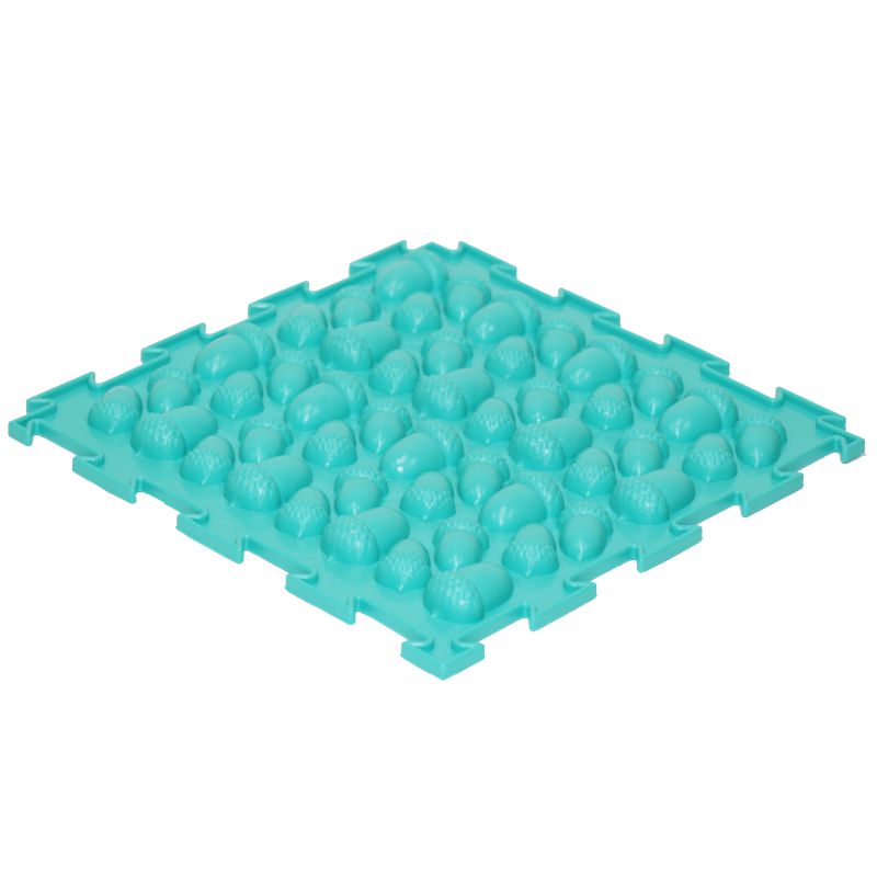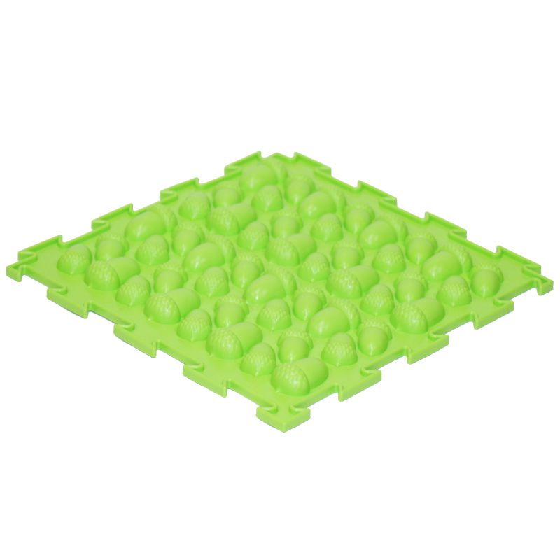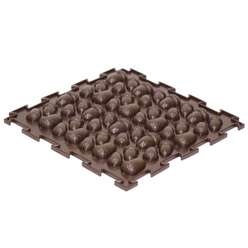 Коврик представляет собой поверхность, покрытую "желудями" с разнофактурными элементами. Модульный коврик "Желуди" (жесткие) создает эффект ходьбы по природным неровным поверхностям.
