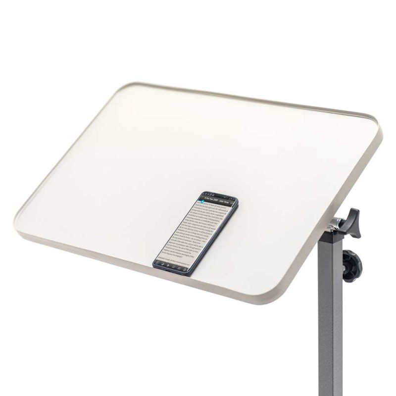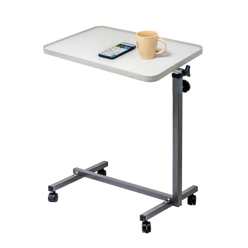 Благодаря регулировке по высоте и углу наклона столешницы, каждый пользователь сможет настроить его с учетом своих индивидуальных потребностей. Столешница выполнена из ламинированного ДСП, что придает столику не только эстетичный вид, но и делает его практичным и долговечным. Специальный пластиковый обод не позволит скатываться предметам на столе. Основание модели имеет 4 колеса, два из них оснащены тормозами для фиксации столика в необходимом положении. Такой прикроватный столик может использоваться как в домашних условиях, так и в медицинских учреждениях.