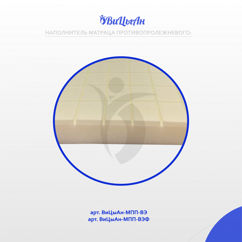 Изделие предназначено для равномерного распределения давления на тело пациента, с целью профилактики образования пролежней у больных с нарушением опорно-двигательного аппарата, для снятия нагрузки на позвоночник. Показания к применению: Необходимость равномерного распределения давления на тело пациента, с целью профилактики образования пролежней у больных с нарушением опорно-двигательного аппарата, для снятия нагрузки на позвоночник. Противопоказания: Вытяжение шейные и скелетные, травмы позвоночника и спинного мозга, при наличии открытых пролежней и по остальным противопоказаниям необходима консультация с врачом.Побочные эффекты: не выявлены.Основа матраца - вязкоэластичный формовой пенополиуретан состоящий их трех блоков, сверху на каждом блоке расположена гелевая вставка, каждый блок в отдельности имеет съемный чехол из спанбонда. Чехол - комбинированный, вариант исполнения: основа трикотажное полотно с влагонепроницаемой, паропроницаемой полиуретановой мембраной, плотность 150 г/м² Состав: полиэстер 82%, полиуретан 18%, нижняя поверхность чехла имеет (которая соприкасается с поверхностью ложа кровати) ручки чехла из прочной, износостойкой ткани. Предельные отклонения матрацев не должны превышать: по длине ± 10 мм; по ширине ± 10 мм; по высоте ± 15 мм; Допустимое отклонение по массе наполнителя и чехла должно составлять не более ± 15%