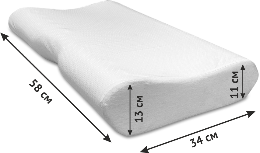 Форма подушки отлично подходит для сна на спине, на боку, а также на животе.