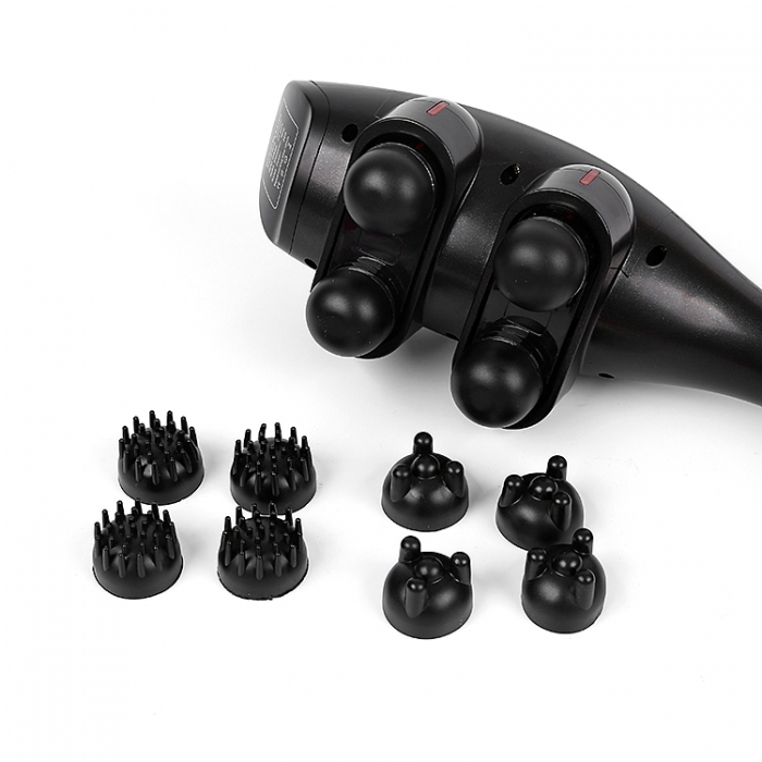 Мощные, ритмичные, дугообразные движения достигают глубоких слоев мышечной ткани, помогая полностью их расслабить. Есть несколько режимов массажа и интенсивности. Благодаря трем комплектам массажных насадок массажер предлагает три вида массажа: