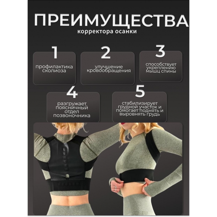 Этот корректор осанки идеально подходит для занятий спортом, работы за компьютером, учебы или выполнения домашних дел. Он обеспечивает поддержку спины, уменьшает напряжение и помогает поддерживать правильное положение тела. Регулируемые ремни и размерная сетка позволяют подобрать оптимальный вариант для любой фигуры.
