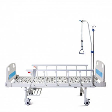 Рама кровати имеет отверстия для установки стойки-держателя для внутривенных инъекций и стойки для подтягивания.