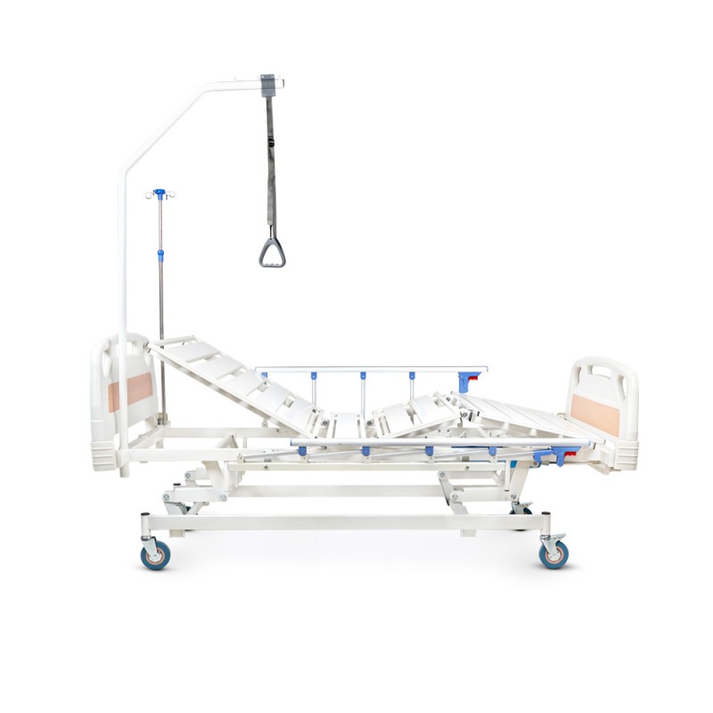 Комплектация кровати включает устройство для подтягивания и стойку для капельниц. Для установки дополнительного оборудования предусмотрены дополнительные отверстия в раме.