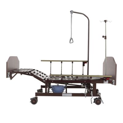 В комплектацию входит:боковые ограждения, инфузионная стойка, дуга для подтягивания, туалетное устройство (ведро с крышкой), ванночка для мытья головы, надкроватный столик.