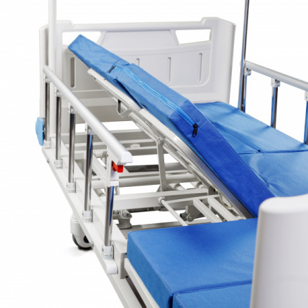 - Кровать имеет многосекционное ложе с регулировкой положения секций (спинной, тазобедренной и голеностопной), что позволяет придавать пациенту максимально удобное положение и снимать нагрузку с мышц.
