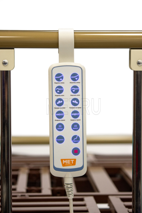 Функциональная кровать МЕТ EVA выполнена в домашней, коричневой цветовой гамме и снабжена спинками с контрастной деревянной текстурой ЛДСП, сочетающимися практически с любой домашней мебелью коричневой цветовой гаммы. Помимо того, что кровать не будет контрастировать с Вашей домашней обстановкой, оказываясь эдаким островком больничной казённости, MET EVA не будет оказывать на Вашего родственника негативное психологическое воздействие, помещая больного в ЛПУ посередь родного дома.