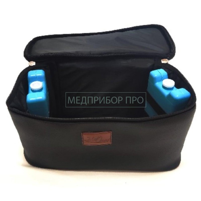 Термоконтейнер-вкладыш выполнен из экокожи, имеется два хладоэлемента, которые входят в комплект. Они позволяют хранить медикаменты в течение 12 часов.