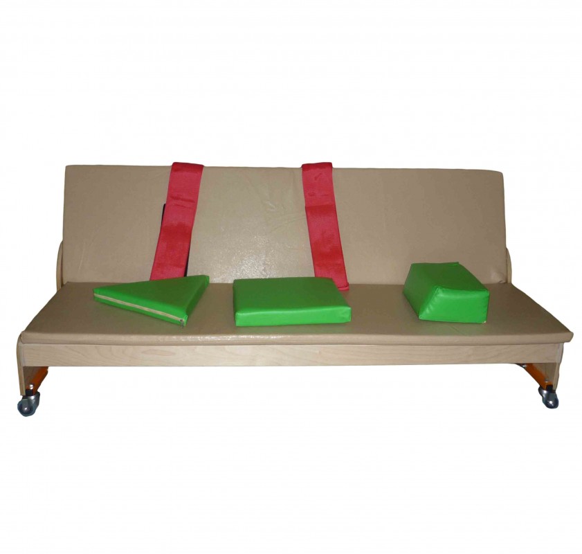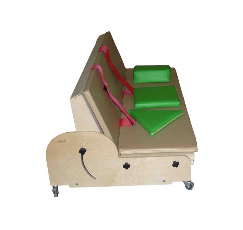 Спинка опоры регулируется по углу наклона на 90 градусов, от вертикали до горизонтали - с возможностью установки в любом промежуточном положении. На сидении спинке закреплены мягкие матрасы.