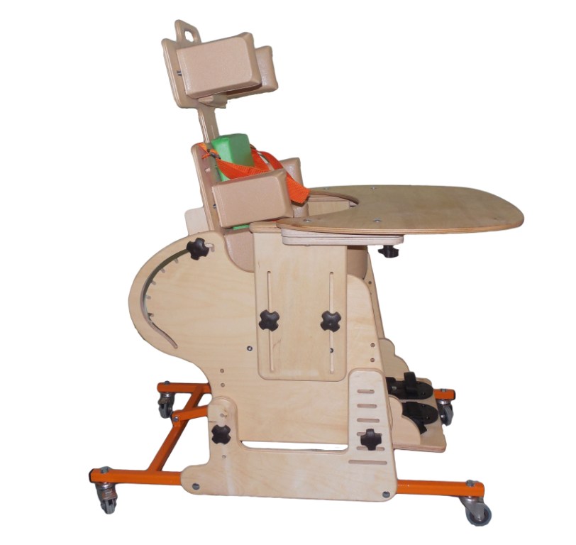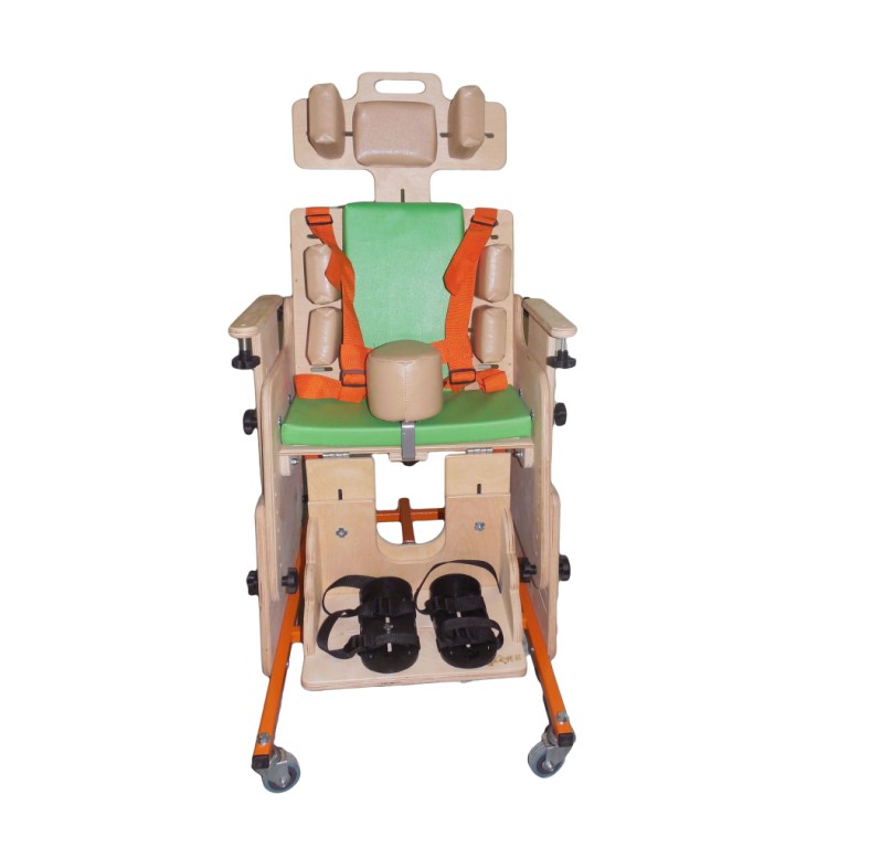Опора для сидения представляет собой ортопедическое кресло на деревянной раме, расположенной на металлическом четырехколесном основании. Все колеса поворотные, задние колеса оснащены стояночными тормозами. Сидение и спинка оснащены съемными мягкими подушками и мягкими упорами-ограничителями. На подножке расположены пластиковые крепления для ступней типа «сандалии» с задними упорами и крепежными ремешками. Опора оснащена подголовником и съемным столиком, устанавливаемым на подлокотники.