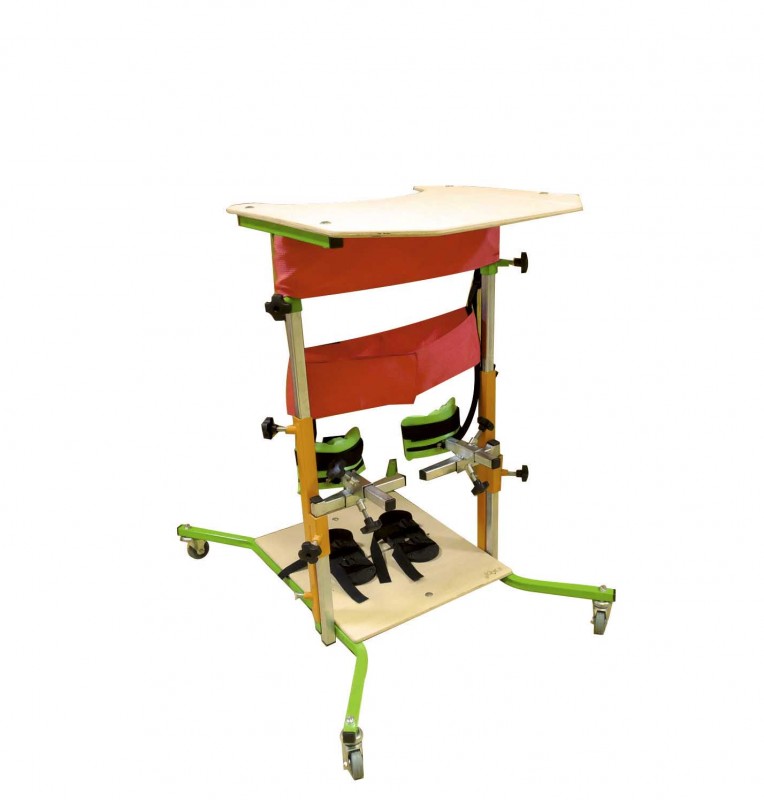 Опора для стояния представляет собой металлическую вертикальную раму со стойким порошковым покрытием, оснащённую креплениями для ступней, системой коленных креплений, креплениями грудного и бедренного отделов, абдуктором, столиком. Рама опоры установлена на 4-х колесном основании, колеса оснащены стояночным тормозом. Крепления для ступней регулируются в любом направлении по плоскости подножки, а коленные крепления независимо регулируются в трёх плоскостях с возможностью закрепления в любом выбранном положении. Опора для стояния является разборной, для обеспечения наилучших условий транспортировки и хранения. Сборка и демонтаж элементов опоры производятся без применения дополнительного инструмента. В комплект поставки входит пошаговая инструкция для сборки.