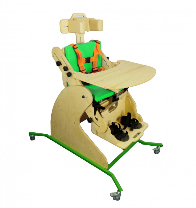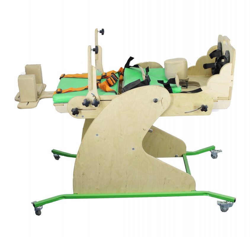Представляет собой металлическую раму на четырехколесном основании с поворотными колесами, оснащенными стояночными тормозами, с поворотным ложем со съемными мягкими подушками на спинке и сиденье, подножкой со стоподержателями, абдуктором и системой креплений. На раму установлено поворотное ложе, состоящее из трех секций (спинка-сиденье-подножка), соединенных между собой шарнирными соединениями, обеспечивающими положение секций под различными углами друг относительно друга. Поворотное ложе может изменять угол от горизонтального до вертикального с фиксацией выбранного положения. Для крепления ребенка-инвалида применяется система креплений в виде ремней типа «уздечка» для фиксации верхней части тела, бедренного ремня и ремня для голеней.