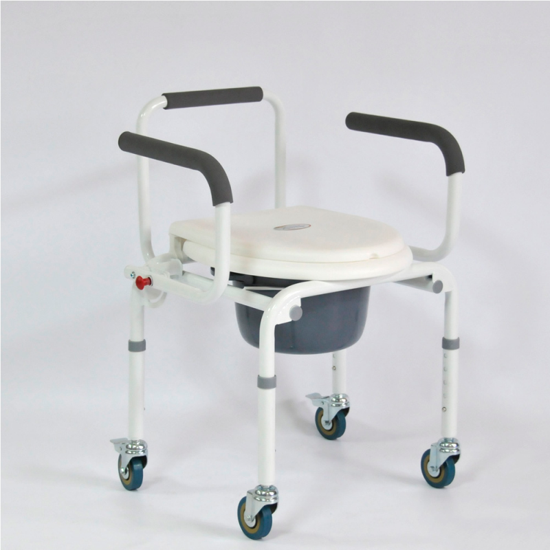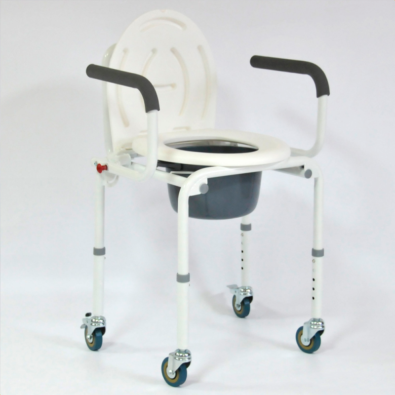 Кресло-туалет используется при уходе за людьми с инвалидностью и больными в лечебном стационаре или домашних условиях. Рама выполнена из стали с полимерным покрытием и не подвергается коррозии. Подлокотники кресла опускаются и поднимаются, что облегчает процесс пересадки. Кресло оборудовано санитарной емкостью с крышкой, которая легко снимается. Емкость удобно переносится за ручку. Кресло регулируется по высоте с помощью кнопочных фиксаторов на ножках конструкции (5 положений регулировки с шагом в 2,5 см). Подлокотники легко опускаются и поднимаются благодаря механизму (надавите на кнопку, затем потяните на себя или опустите подлокотник), за мягкие накладки удобно держаться руками. Сиденье и крышку легко отсоединить для санитарной обработки, благодаря клипсовому креплению. Задние колеса оснащены стояночными тормозами.