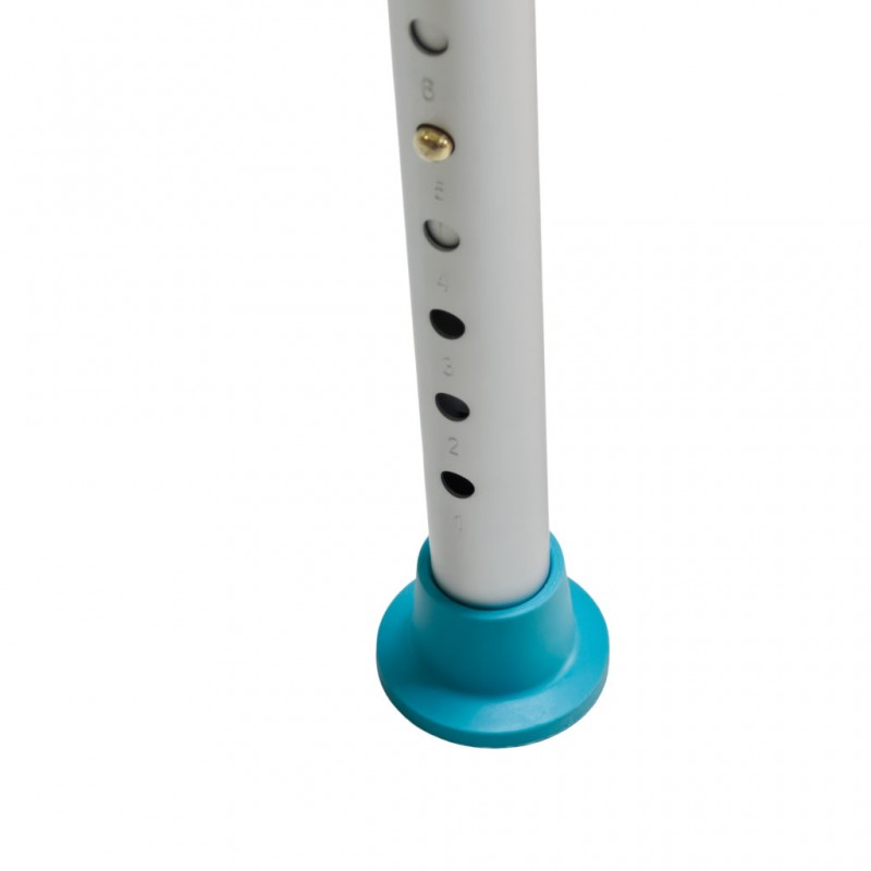 Конструкция стула выполнена из прочного алюминиевого каркаса, устойчивого к влаге и коррозии. Сиденье изготовлено из нескользящего пластика. Высота ножек регулируется (8 положений регулировки), что позволяет адаптировать изделие под индивидуальные потребности пользователя. Резиновые наконечники обеспечивают надежное сцепление с поверхностью, предотвращая скольжение. Стул лёгкий, устойчивый и прост в уходе — идеальный помощник для ежедневного использования в ванной комнате.