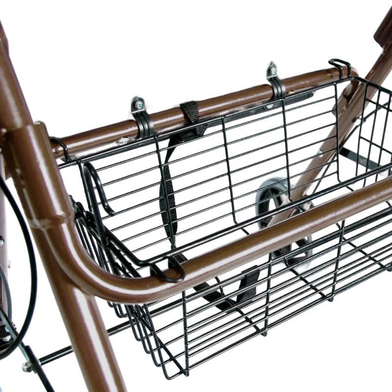 Конструкция ролятора с повышенной грузоподъемностью выполнена из алюминия с полимерным покрытием, сиденье обшито искусственной кожей. Ролятор оборудован двумя ручными тормозами задних колес c фиксирующей функцией, расположенных на ручках конструкции. Ручки имеют рифленую форму и не скользят в ладонях; регулируются по высоте. Под сиденьем закрепляется вместительная корзина для личных вещей и продуктов. Опору для спины можно отсоединить, если ролятор не используется в качестве стула. Ролятор складывается и не занимает много места дома или при транспортировке.